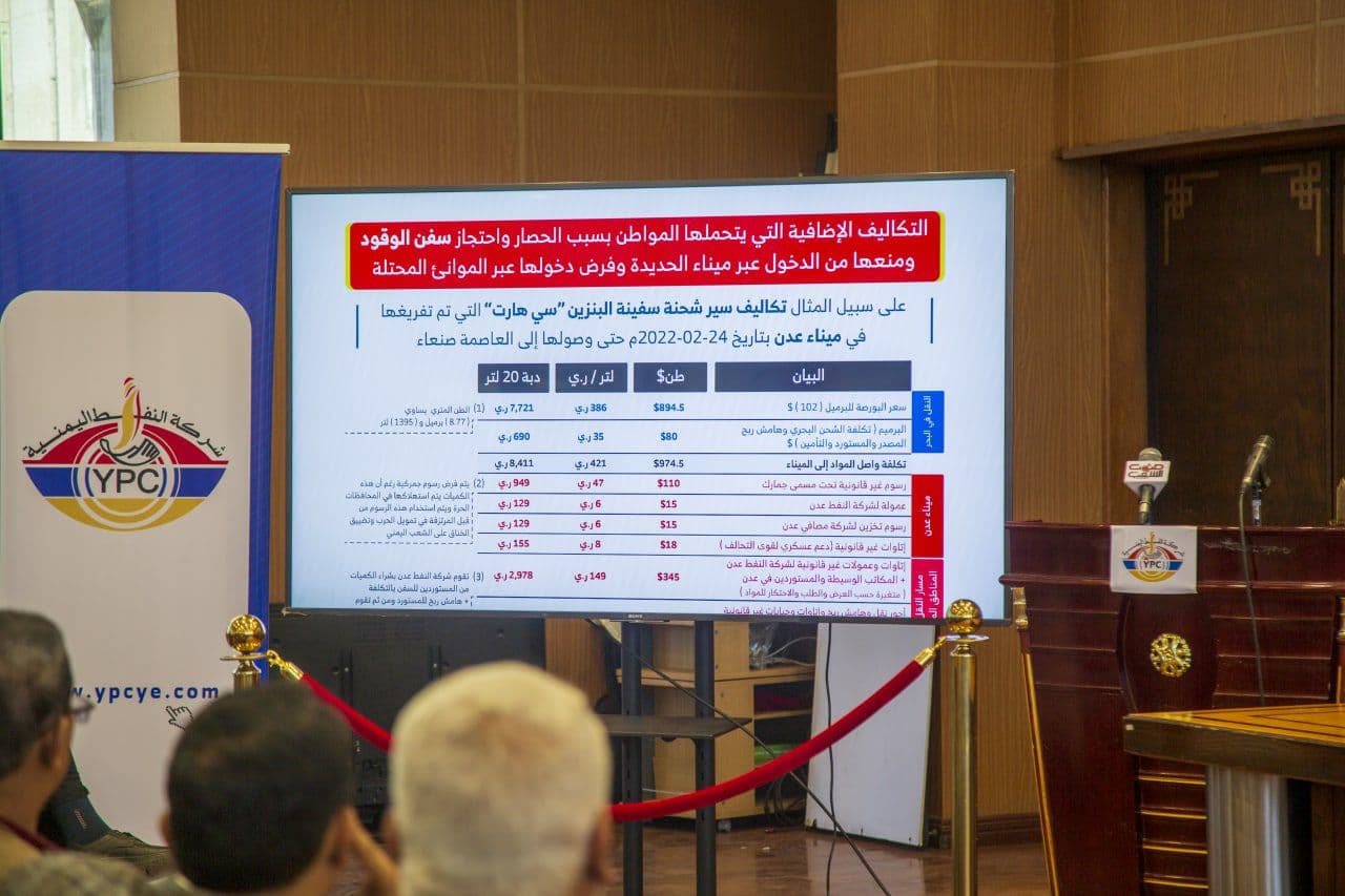 وكان المتحدث الرسمي للشركة قدّم عرضاً توضيحياً عن مسار الوقود وخطوط سيرها، وكذا خطوط سير ناقلات المشتقات النفطية من الموانئ إلى صنعاء.