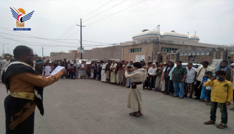 نُظّمت في مديريات محافظة الحديدة اليوم عقب صلاة الجمعة وقفات احتجاجية، للتنديد باستمرار تحالف العدوان الأمريكي السعودي في احتجاز سفن المشتقات النفطية، تحت شعار “حصاركم لن يركعنا وتحية لأجهزتنا الأمنية”.