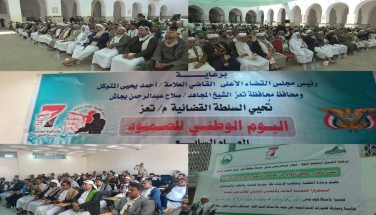 كما نظّمت السلطة القضائية في محافظة تعز، الخميس، فعالية خطابية بمناسبة اليوم الوطني للصمود.