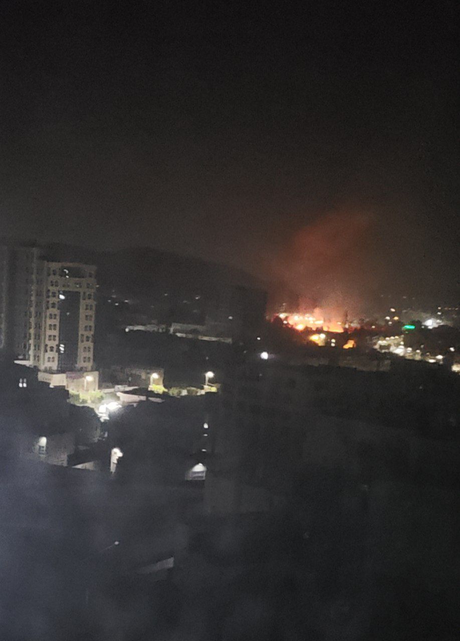 في السياق، تداول ناشطون على مواقع التواصل الاجتماعي صوراً ومقاطع فيديو قالوا إنها للحظة استهداف طيران العدوان حوش شركة صافر في حدة بالعاصمة صنعاء وإشتعال النيران في الحوش.