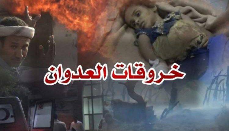 وذكر المصدر أن مرتزقة العدوان قاموا بإطلاق صواريخ الكاتيوشا والمدفعية على الصوح قبالة نجران. وفي محافظة الجوف شملت الخروقات تحليق طيران العدوان الحربي والاستطلاعي في سماء مديريات (الحزم والغيل والمصلوب والمتون والمطمة)، ومعاودة الطيران الحربي والاستطلاعي المعادي التحليق في سماء المديريات المذكورة.