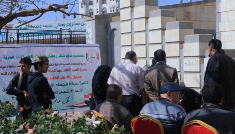 دشن الملف الفلسطيني لأنصار الله – اليمن وحركة الجهاد الإسلامي في فلسطين فرع اليمن اليوم بصنعاء توزيع هدية قائد الثورة السيد عبد الملك بدر الدين الحوثي للجالية الفلسطينية في اليمن.