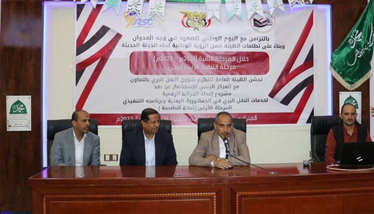 دشنت الهيئة العامة لتنظيم شؤون النقل البري بالتعاون مع المركز اليمني للإستشعار عن بعد، اليوم مشروع إعداد الخرائط الرقيمة لخدمات النقل البري في الجمهورية اليمنية وبرنامجه التنفيذي (المرحلة الأولى أمانة العاصمة) للفترة 2 إبريل – 31 ديسمبر 2022م.