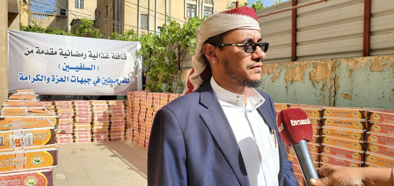 وأوضح عضو الهيئة العليا لحزب الرشاد السلفي ومستشار المجلس السياسي الأعلى محمد طاهر أنعم، أن القافلة احتوت على خمسة أطنان من التمور دعماً للمراطبين المدافعين عن الأرض والعرض ضد العدوان السعودي على اليمن.