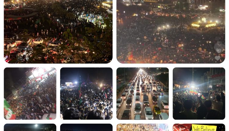 وفي مدينة كراتشي الساحلية بشمال بحر العرب، ردد أكثر من 20 ألف شخص شعارات تتعهد بعودة خان إلى السلطة، وفي العاصمة إسلام أباد، أضاءت أنوار الآلاف من المؤيدين سماء الليل بينما كان خان يشق طريقه بين الحشد على متن شاحنة ذات ألوان زاهية.