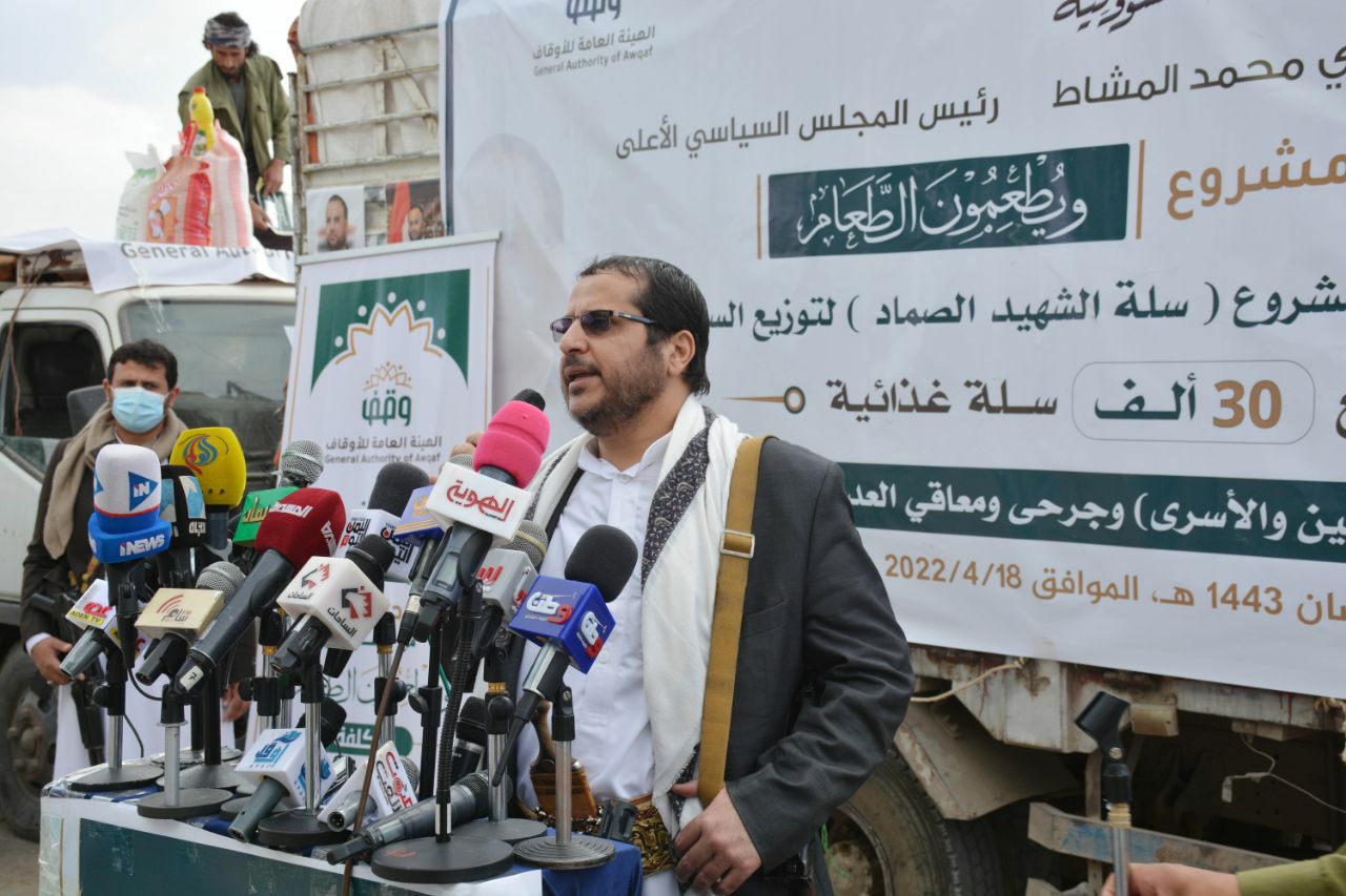 وفي ختام التدشين، بحضور القائم بأعمال وزير حقوق الإنسان علي الديلمي ونائب وزير الصناعة محمد الهاشمي، ورئيس الهيئة العامة للزكاة الشيخ شمسان أبو نشطان ونائب رئيس هيئة الأوقاف عبدالله علاو ووكلاء الهيئة وعدد من قيادات الدولة ومسؤولي الهيئة، قام أعضاء المجلس السياسي الأعلى الحوثي والوهباني والرهوي ورئيسا مجلسي الوزراء والشورى، بتوزيع سلال غذائية.