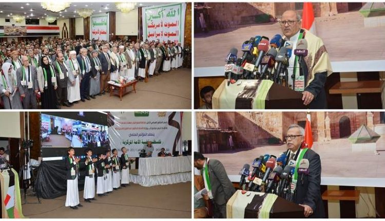 مؤتمر فلسطين قضية الأمة المركزية بالعاصمة صنعاء يؤكد على تمسك اليمن بحقوق الشعب الفلسطيني وتطهير كامل فلسطين