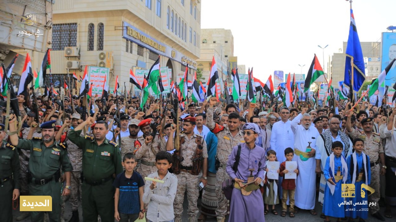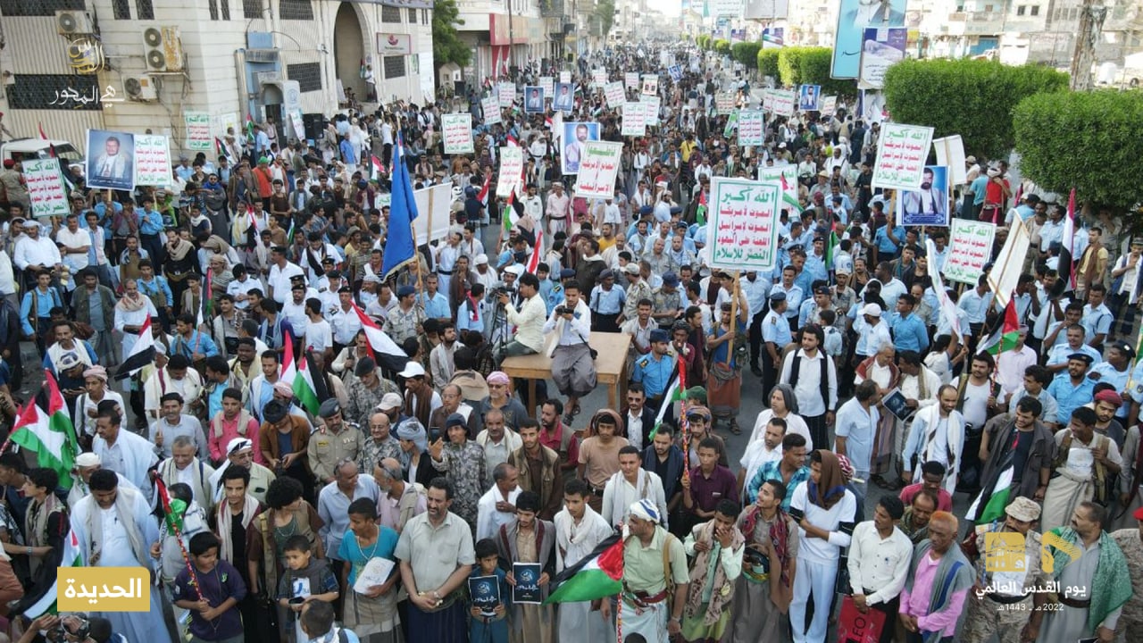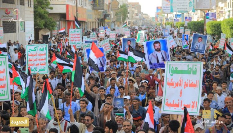 شهدت مدينة الحديدة، الجمعة، مسيرة جماهيرية كبرى بيوم القدس العالمي تحت شعار “القدس هي المحور”.