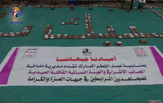 سيرّت قيادة المجلس المحلي والهيئة النسائية الثقافية العامة في مديرية مناخة محافظة صنعاء، اليوم قافلة عيدية للجيش واللجان الشعبية المرابطين في الجبهات بمناسبة عيد الفطر المبارك.