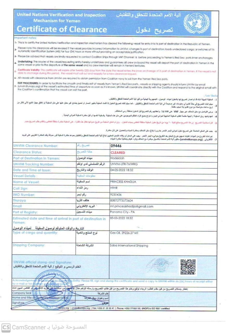 وقال المتحدث الرسمي باسم الشركة عصام المتوكل، إن التحالف العدوان قام بخرق جديد للهدنة واحتجاز سفينة الديزل “برنسس خديجة” المحملة بـ 29226 طن من الديزل.