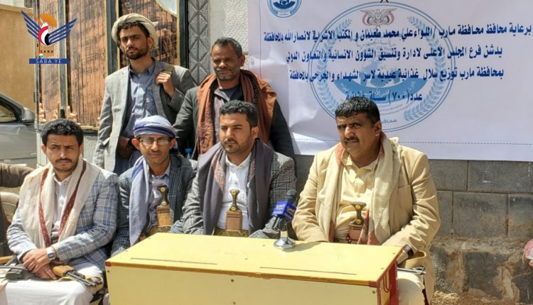 تدشين مشروع توزيع 700 سلة غذائية لأسر الشهداء والجرحى بمأرب