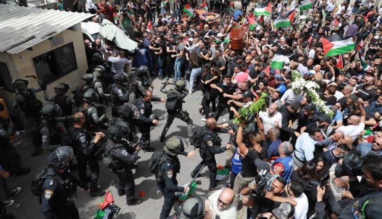 إصابة العشرات إثر اعتداء قوات الاحتلال الإسرائيلي على المشاركين في تشييع جثمان الشهيدة شيرين أبو عاقلة