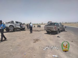 توفي شخصان وأُصيب ثلاثة آخرون، إثر حادث تصادم سيارتين على الخط الرابط بين محافظتي ذمار والبيضاء.