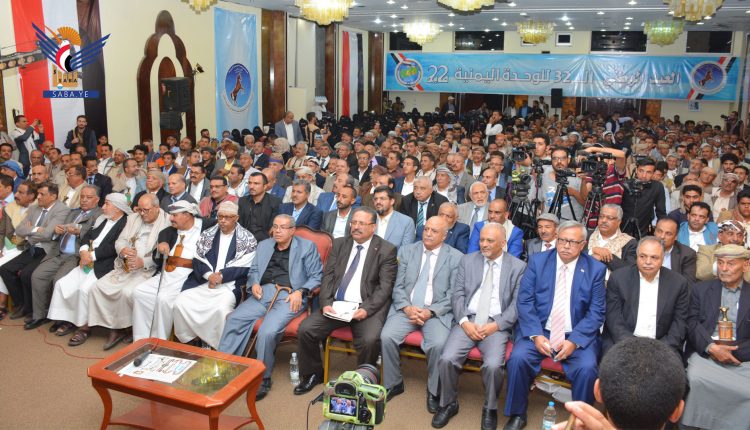 وقال” من المؤسف أن يأتي الاحتفال بهذه المناسبة الوطنية في وقت يتعرض فيه هذا المنجز التاريخي لأخطر مؤامرات من قبل أعداء اليمن والقوى التي كانت رافضة لميلاد اليمن الموحد، وعبر عدوان ظالم يتعرض له الوطن منذ ثمان سنوات أهم أهدافه تقسيم وتمزيق اليمن.