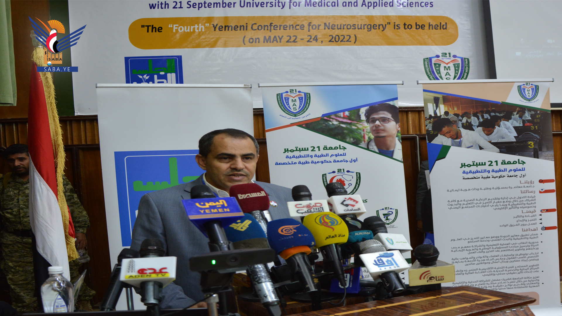 ولفت إلى تميّز انعقاد المؤتمر للعام الجاري بالمشاركة الخارجية الواسعة من روّاد تخصص جراحة المخ والأعصاب عبر البث المباشر لقناة تلفزيون جراحة المخ والأعصاب العالمية لتبادل الخبرات بين الجراحيين اليمنيين والدوليين، وزيادة كفاءة أطباء الجراحة العصبية، وكذا المشاركة الأكاديمية من جامعة 21 سبتمبر للعلوم الطبية والأكاديمية.