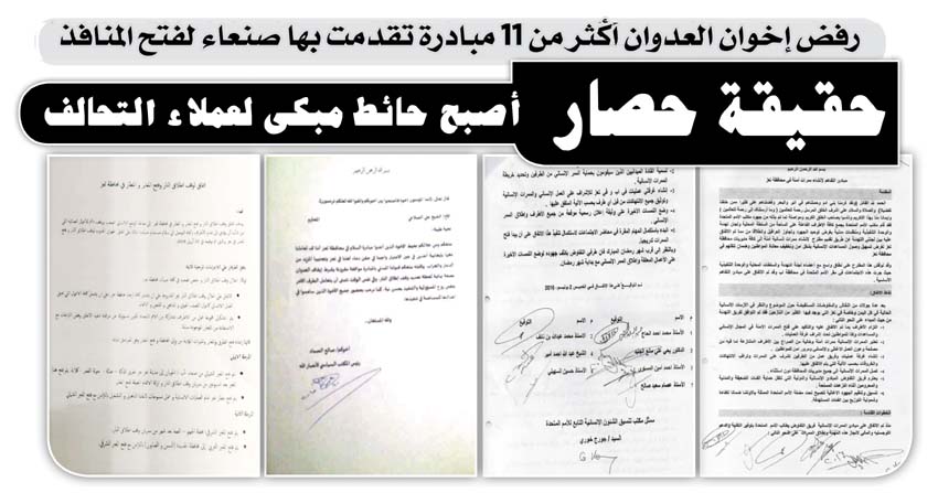 رفض أكثر من ١١ مبادرة تقدمت بها صنعاء لفتح منافذ تعز.. حقيقة حصار أصبح حائط مبكى لعملاء التحالف