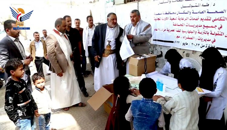 دُشن بمحافظة صعدة اليوم النشاط الايصالي التكميلي لتقديم خدمات الرعاية الصحية الأولية المجانية في مديريات المحافظة ومعالجة الأمراض المنقولة بالتربة والبلهارسيا للفئة العمرية من 5 – 25 عاماً في مديريتي الصفراء ومجز.