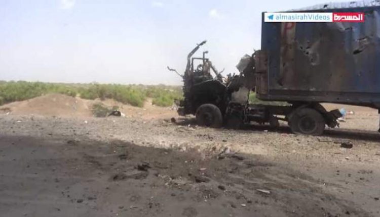 (فيديو).. شاهد استهداف العدوان لشاحنات النقل في تعز