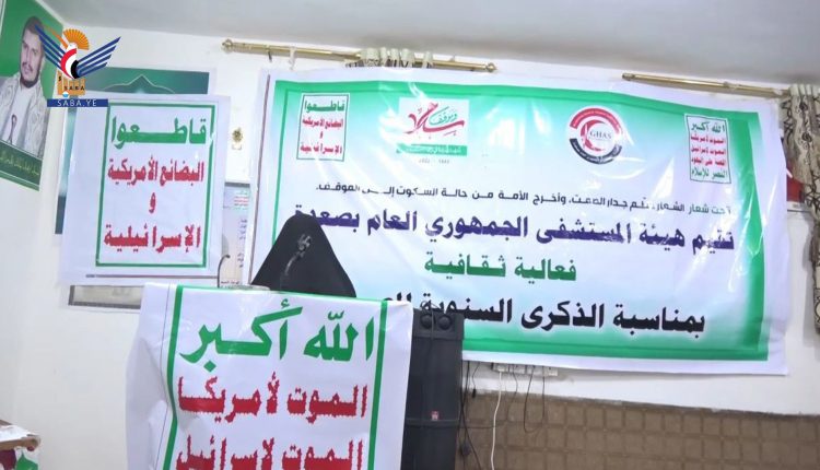 نظم الكادر الطبي النسائي بهيئة المستشفى الجمهوري العام في محافظة صعدة، فعالية ثقافية بالذكرى السنوية للصرخة في وجه المستكبرين.