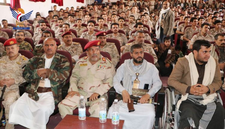فيما أشار مدير مكتب قائد المنطقة الرابعة المقدم علي الشرفي وممثل عن العائدين العقيد علي الصبري وعن خريجي الدفع العسكرية حمزي الحمزي، إلى أهمية التصدي للعدوان وإفشال مؤامراته بحق اليمن أرضاً وإنساناً.