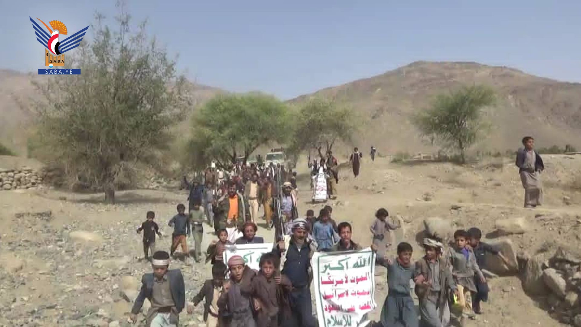 وفي المسيرة التي شارك فيها عدد من قيادات السلطة المحلية والمشايخ والوجهاء، القيت كلمات أكدت أن الصرخة التي أطلقها الشهيد القائد حسين بدر الدين الحوثي في وجه الاستكبار الأمريكي والصلف الصهيوني أعادت للأمة هيبتها.