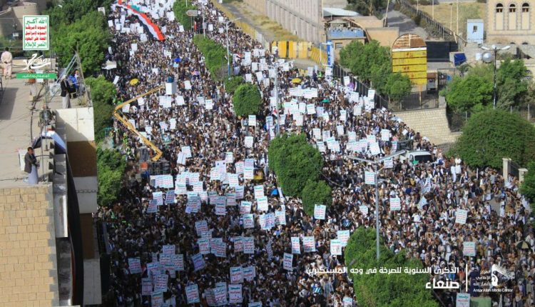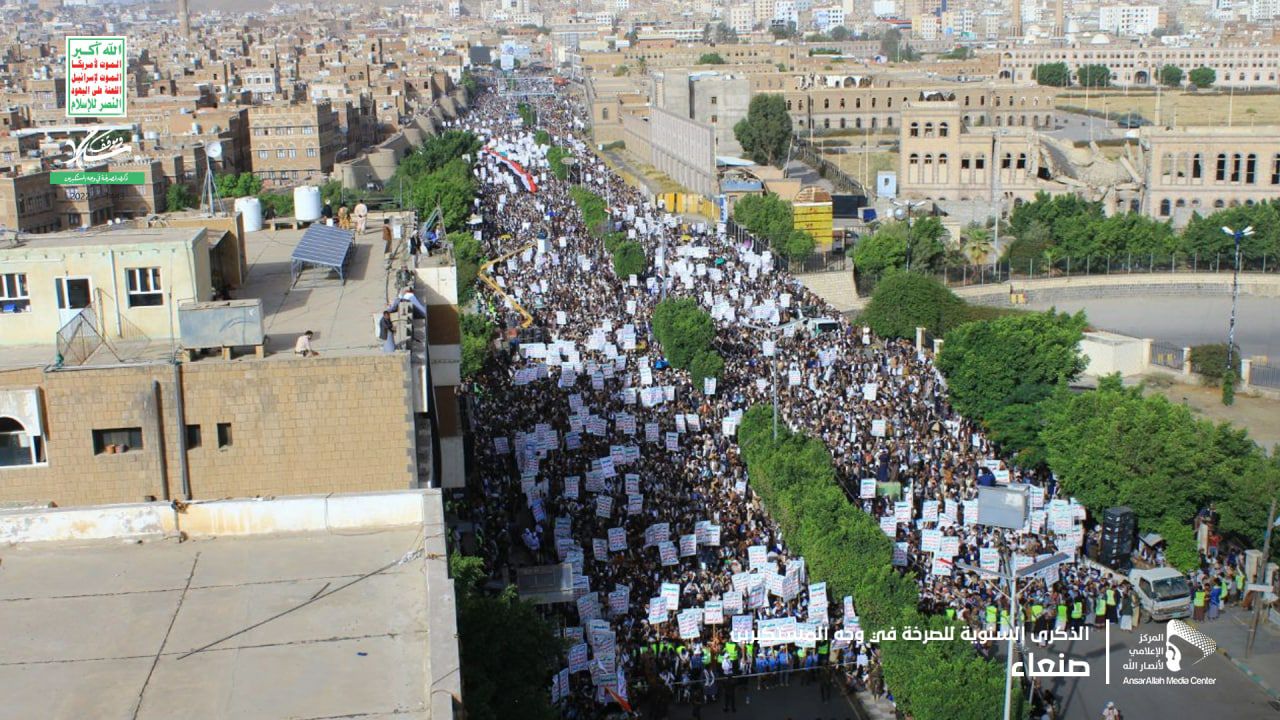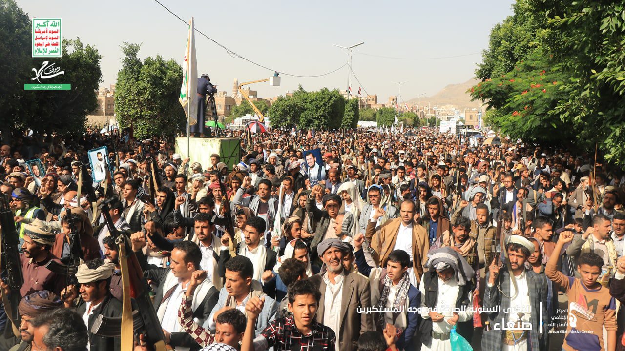 شهدت العاصمة اليمنية صنعاء، عصر اليوم الجمعة، في ساحة باب اليمن مسيرة جماهيرية حاشدة لإحياء الذكرى السنوية للصرخة في وجه المستكبرين، تحت شعار “سلاح وموقف”.