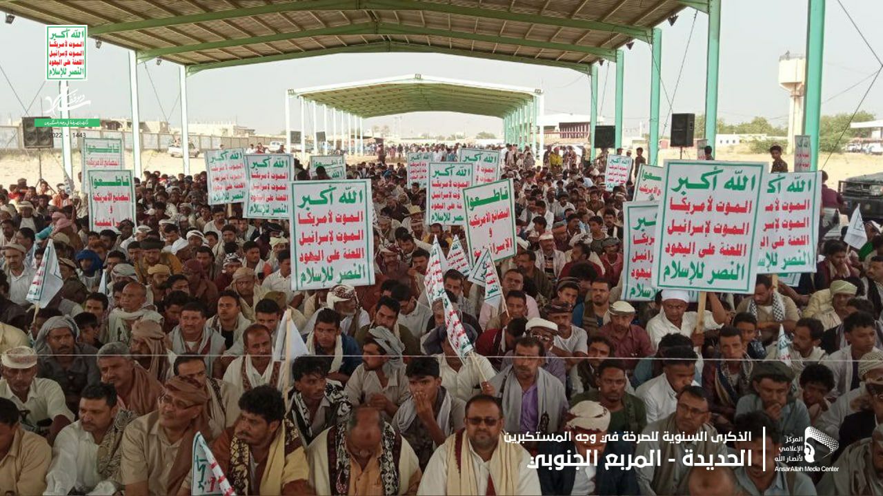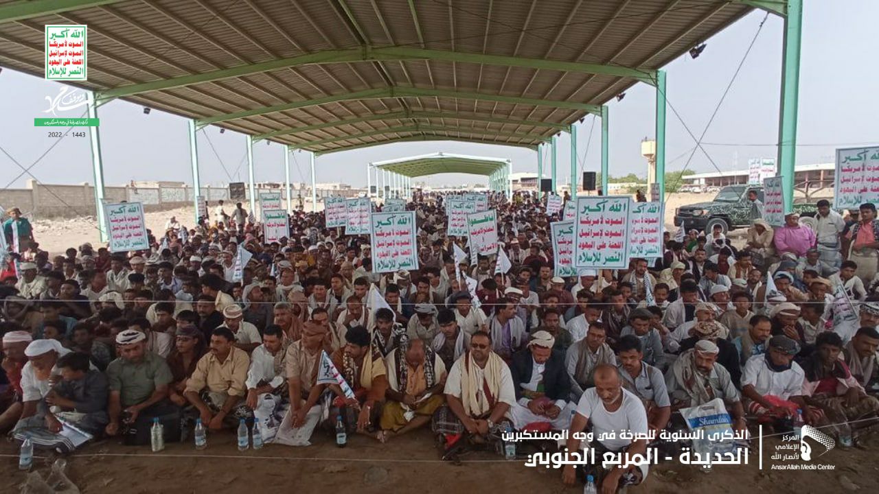 احتشد أبناء مديريات المربع الجنوبي في محافظة الحديدة، اليوم، بمدينة الحسينية مديرية بيت الفقيه، في مسيرة وفعالية، إحياءً للذكرى السنوية للصرخة تحت شعار “الصرخة سلاح وموقف”.