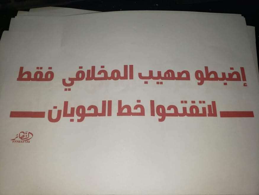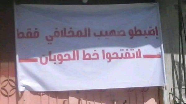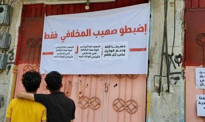 وطالب التجار في مدينة تعز المحتلة “مجلس الرياض” بتوفير الأمن لنشاطهم التجاري داخل المدينة أولا.. ورفعوا لافتات على المحال المغلقة كتب فيها : « اضبطوا صهيب المخلافي فقط.. لا تفتحوا طريق الحوبان”، بالإشارة إلى أن مشكلة التجار في مدينة تعز تكمن في جرائم الاعتداءات والابتزاز التي تمارسها مجاميع المرتزقة المسلحة قبل إغلاق الطرق.