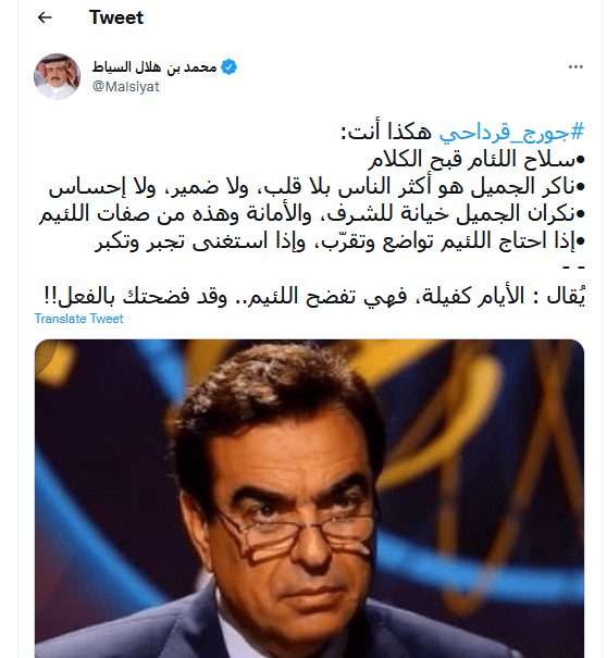 أثار وزير الإعلام اللبناني السابق جورج قرداحي ضجة على وسائل التواصل الإجتماعي بعد تصريحاته الأخيرة التي تحدث فيها عن عدم تقديم دول مجلس التعاون الخليجي مساعدات لبلاده في أزماتها.