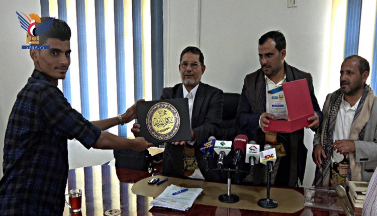 الصمود | كّرم وزير التربية والتعليم يحيى الحوثي اليوم، بصنعاء الطالب رائد صالح محمد الحي، لحصوله على الميدالية الفضية في أولمبياد الرياضيات الخليجي.