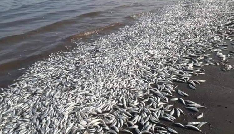 نشر نشطاء صورا لأسماك نافقة تنتشر على إمتداد ساحل أبين بكثافة كبيرة بعد تعرضها للإبادة الجماعية.
