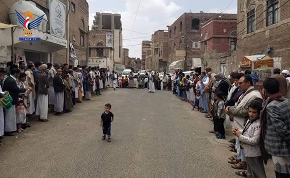 شهدت مختلف مديريات أمانة العاصمة صنعاء وقفات غضب شعبية متعددة اليوم عقب صلاة الجمعة حملت شعار “لبيك يا رسول الله” تنديداً باساءة متحدث الحزب الحاكم الهندي لرسول الله صلى الله عليه وآله وسلم وأزواجه أمهات المؤمنين.