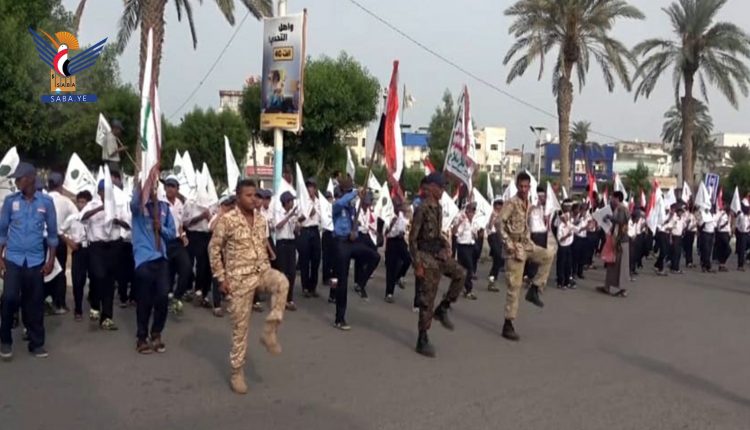 نظمت اللجنة التنفيذية للدورات الصيفية في محافظة الحديدة اليوم، مسيرات شبابية وعروض كشفية لطلاب المدارس الصيفية في المدينة.