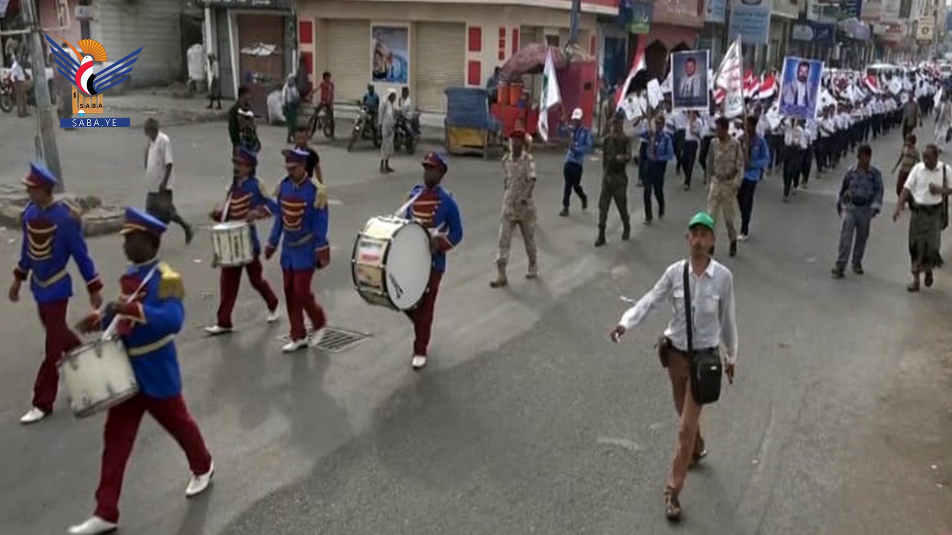 وانطلقت المسيرات والعروض في وقت مبكر من صباح اليوم ، بمشاركة وكيل أول المحافظة أحمد البشري والوكيل المساعد علي الكباري ومديرو التربية في مديريات المدينة وطلاب وكوادر المدارس الصيفية ، من جولة شمسان تقاطع شارع صنعاء وحتى حديقة الشعب وشارع الميناء، حيث تم تقديم العديد من العروض الكشفية والرياضية.