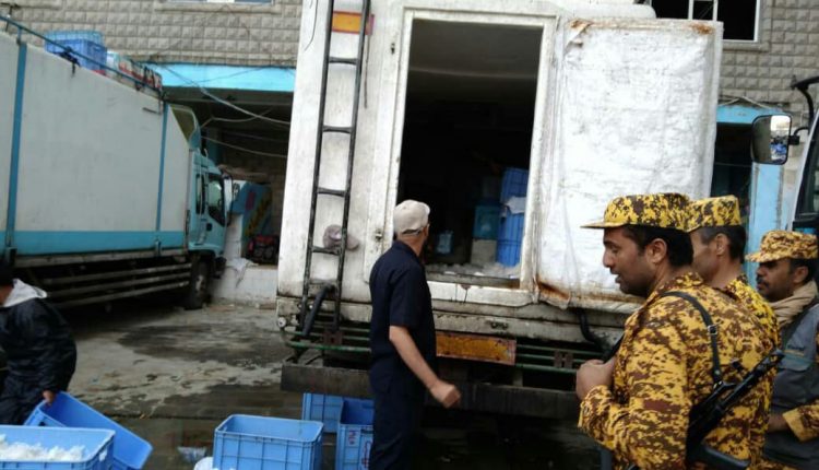 ضبطت الإدارة العامة للتسويق قطاع خدمات الإنتاج والتسويق السمكي بوزارة الثروة السمكية اليوم الثلاثاء، شاحنة أسماك تالفة في سوق البليلي لبيع الأسماك بأمانة العاصمة صنعاء.
