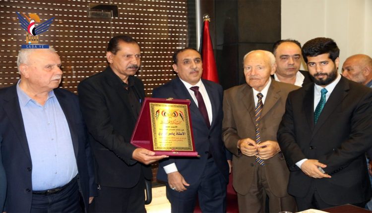 حضر حفل التكريم الوزير المفوض بسفارة اليمن في سوريا رضوان الحيمي ونخبة من السياسيين والمثقفين العرب.
