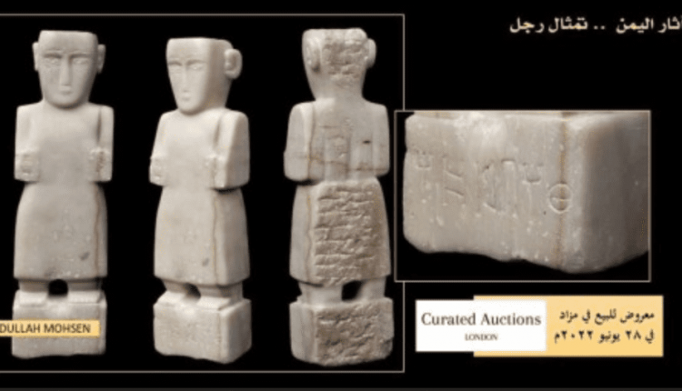 وقال الباحث محسن ان تمثال يظهر رجل واقف من اليمن القديم سيعرض للبيع في مزاد علني بعد سبعه أيام في لندن.