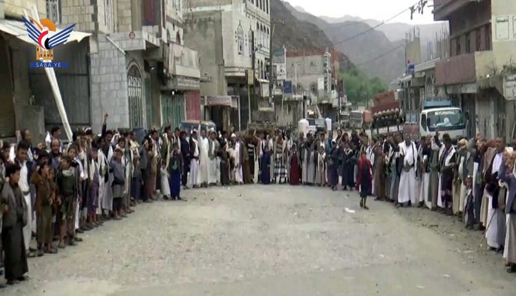 نظم أبناء منطقة الكبري بشرس محافظة حجة وقفة احتجاجية للتنديد بجريمة اغتصاب مرتزقة العدوان لست فتيات في مديرية حيس بمحافظة الحديدة، والتصريحات الهندية المسيئة لرسول الله صلوات الله عليه وآله وسلم.