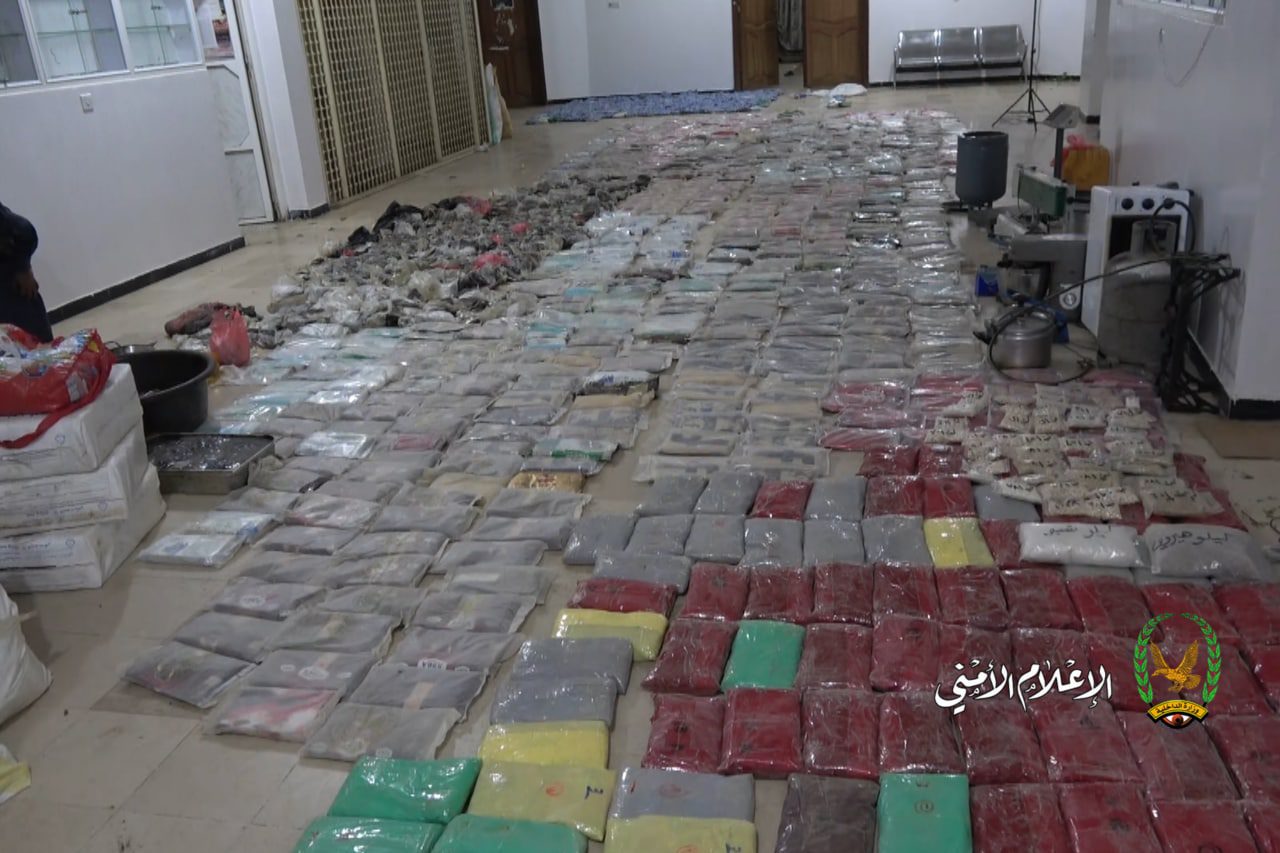 ضبطت الإدارة العامة لمكافحة المخدرات، بالتنسيق مع النيابة الجزائية المتخصصة، كمية طن و305 كيلو جرام من مادة الحشيش وخمسة كيلو و984 جرام من حبوب الكبتاجون، وكيلو جرام من الهيروين، وكيلو وتسعة جرام من مادة الشبو المخدرة، وكذلك ضبط معمل لإعادة تصنيع وتعبئة وتغليف هذه المواد المخدرة، في أحد المنازل في العاصمة صنعاء.