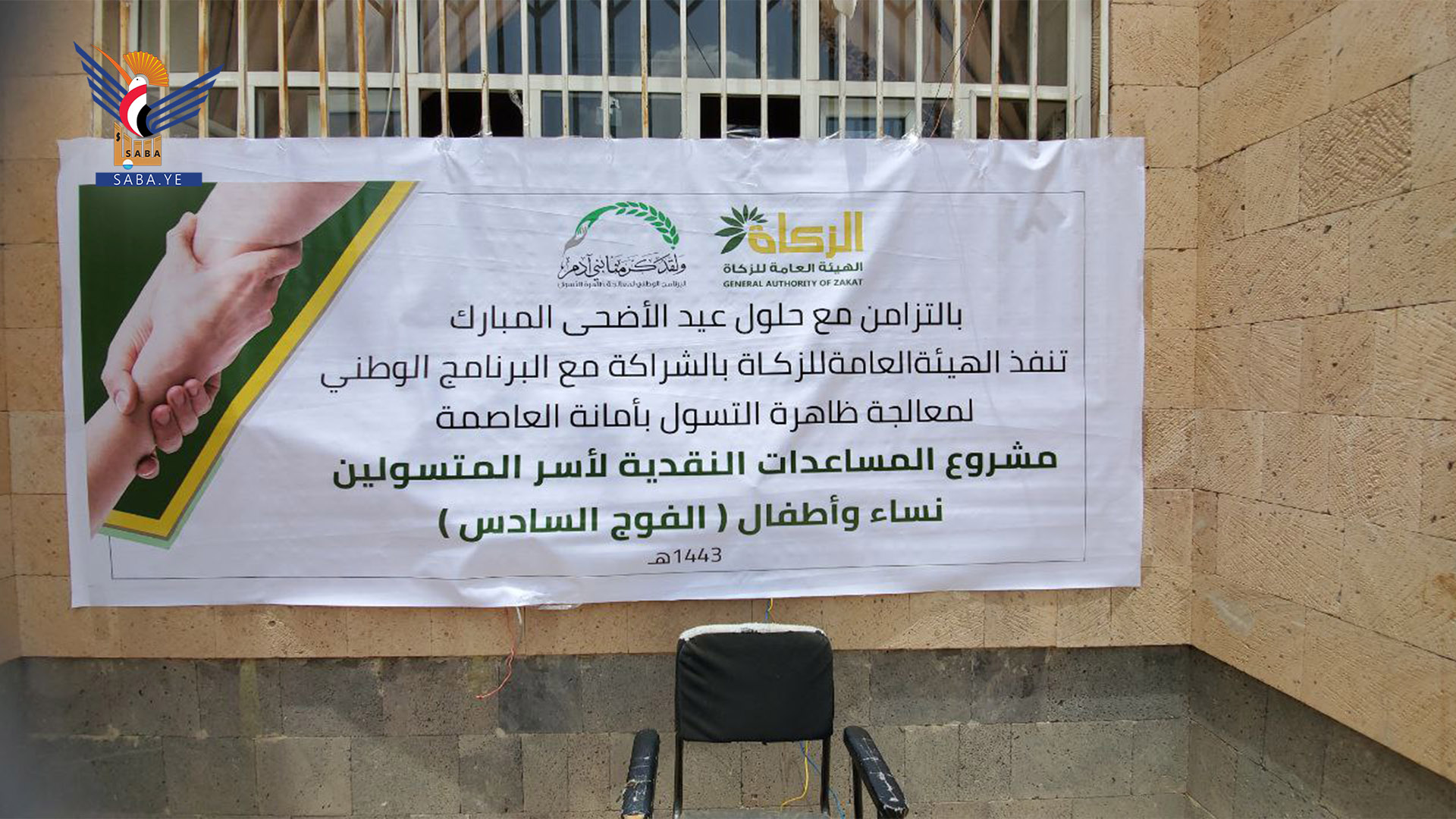 دشنت الهيئة العامة للزكاة بالشراكة مع البرنامج الوطني لمعالجة ظاهرة التسول بأمانة العاصمة صنعاء اليوم، مشروع توزيع مساعدات نقدية وكسوة عيدية لأسر المتسولين من النساء والأطفال “الفوج السادس” بالتزامن مع حلول عيد الأضحى.
