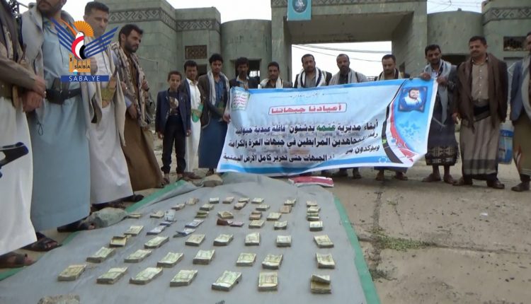 سير أبناء مديرية عتمة بمحافظة ذمار، اليوم ، قافلة عيدية للمرابطين في الجبهات تحت شعار “أعيادنا جبهاتنا”.