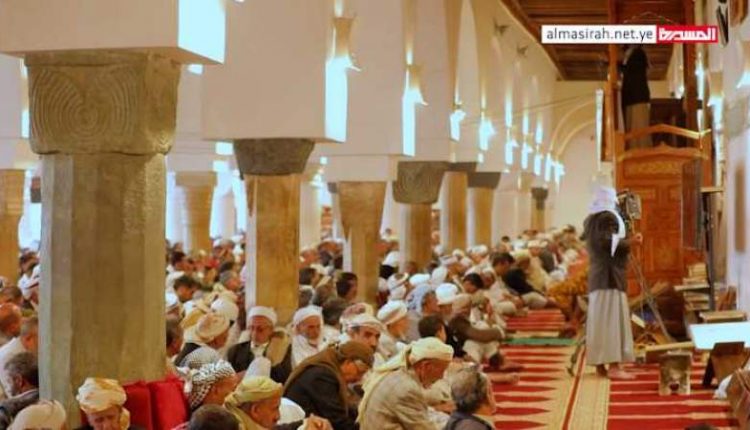 أدت جموع المواطنين صلاة الجمعة بالجامع الكبير بصنعاء القديمة وكلهم شوق وحنين لأداء شعائر الله في مكة والمدينة بعد أن حرموا منها لثمانية أعوام جراء عدوان قرن الشيطان وحصاره الظالم.. المواطنون عبروا عن استنكارهم الشديد من هرولة النظام السعودي نحو التطبيع مع الصهاينة وأكدوا أنهم لن يسكتوا وسيقومون بواجبهم.