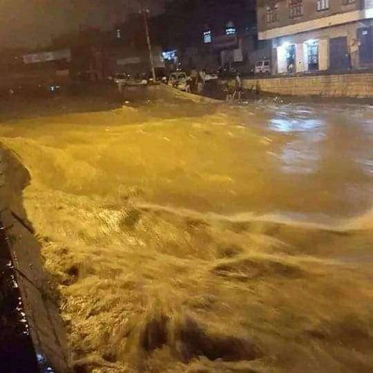 وتداول ناشطون على مواقع التواصل الإجتماعي صوراً ومقاطع فيديو لسيول الأمطار الغزيرة التي غمرت شوارع وأحياء العاصمة صنعاء، وكذلك تدفق سيول الأمطار بقوة في مجرى سائلة صنعاء لتملأها بالكامل وتتسبب في إغراق بعض الأحياء السكنية والأسواق التجارية بأمانة العاصمة صنعاء.