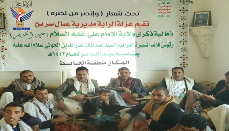 نظمت السلطة المحلية بمديرية عيال سريح محافظة عمران اليوم، فعالية ثقافية بمناسبة ذكرى يوم الولاية، تحت شعار “من كنت مولاه فهذا علي مولاه”.