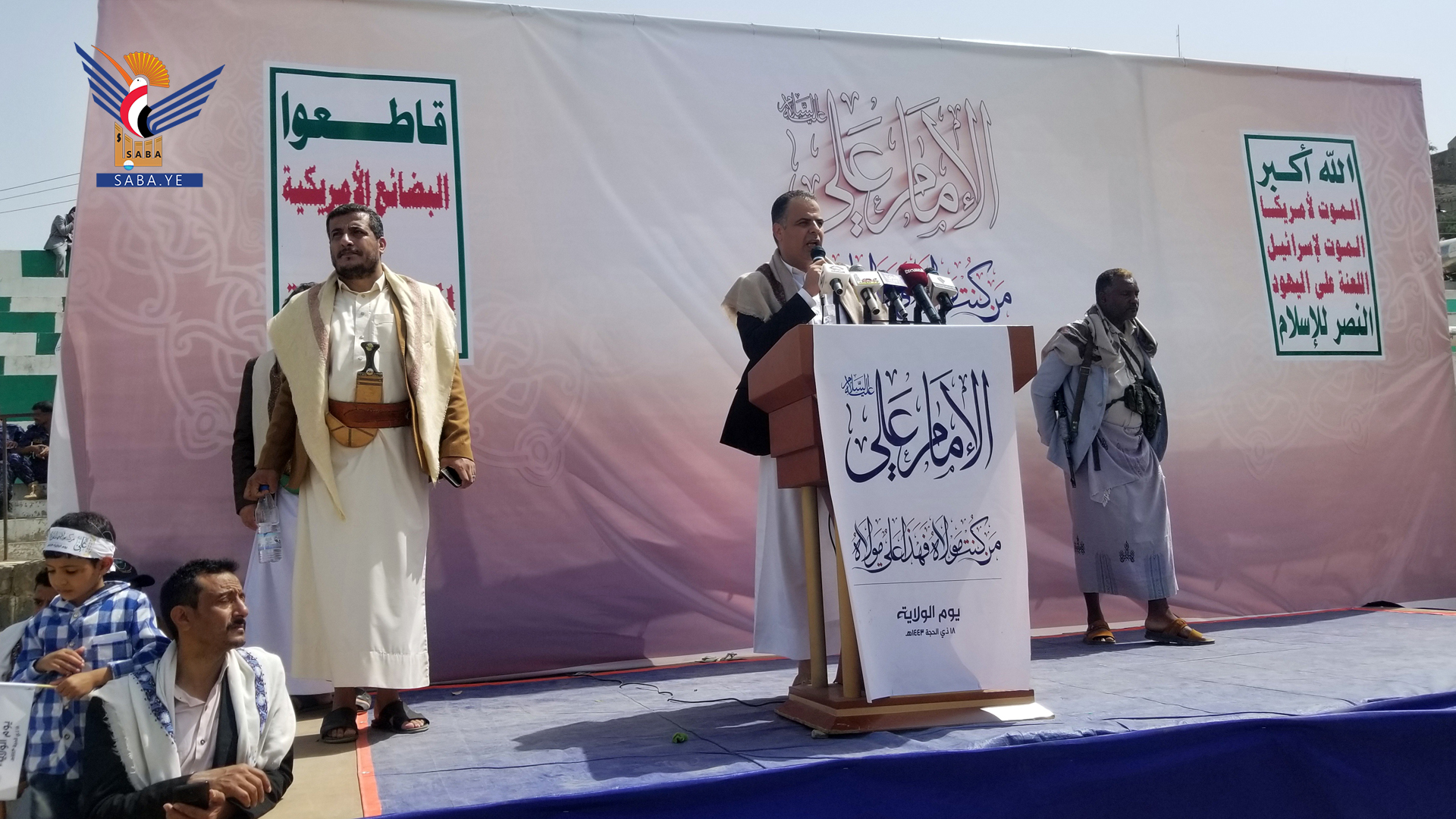 وتطرق إلى العلاقة التي تربط أهل اليمن بالإمام علي وتوليهم له .. مؤكداً حاجة الأمة للاقتداء بشجاعة ومواقف الإمام علي في الوقت الذي تهرول فيه العديد من الأنظمة العربية والإسلامية لتولي أمريكا والتطبيع مع الكيان الصهيوني.