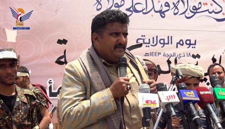 وفي الفعالية أشار وكيل أول المحافظة محمد علوان ومدير المديرية صادق هيسان، إلى أهمية استلهام الدروس والعبر من ذكرى يوم الولاية في تأصيل الهوية الإيمانية وإعادة أمجاد أهل اليمن في مناصرة ونصرة الإسلام وتعزيز دورهم في مواجهة قوى الغطرسة والاستكبار.