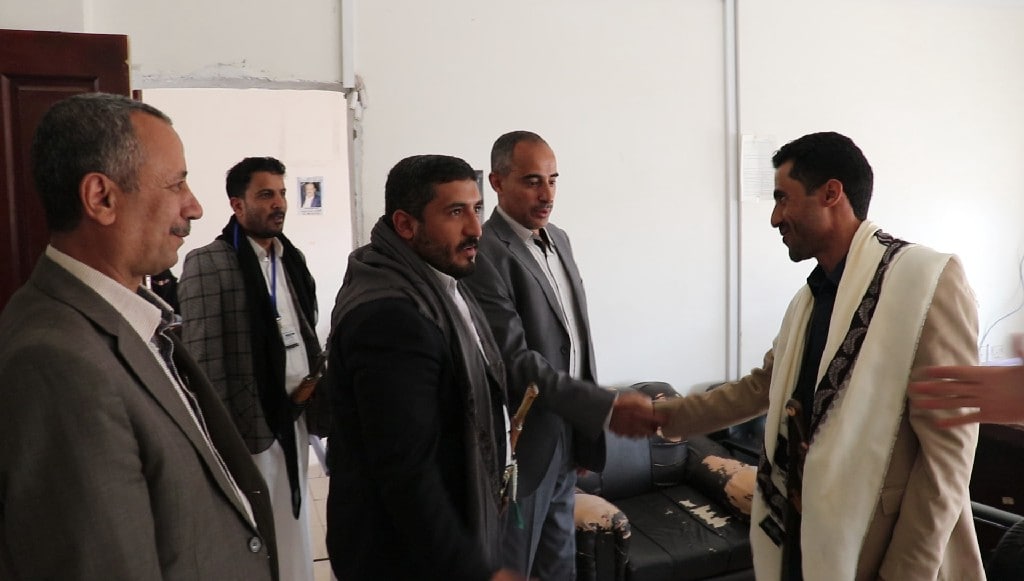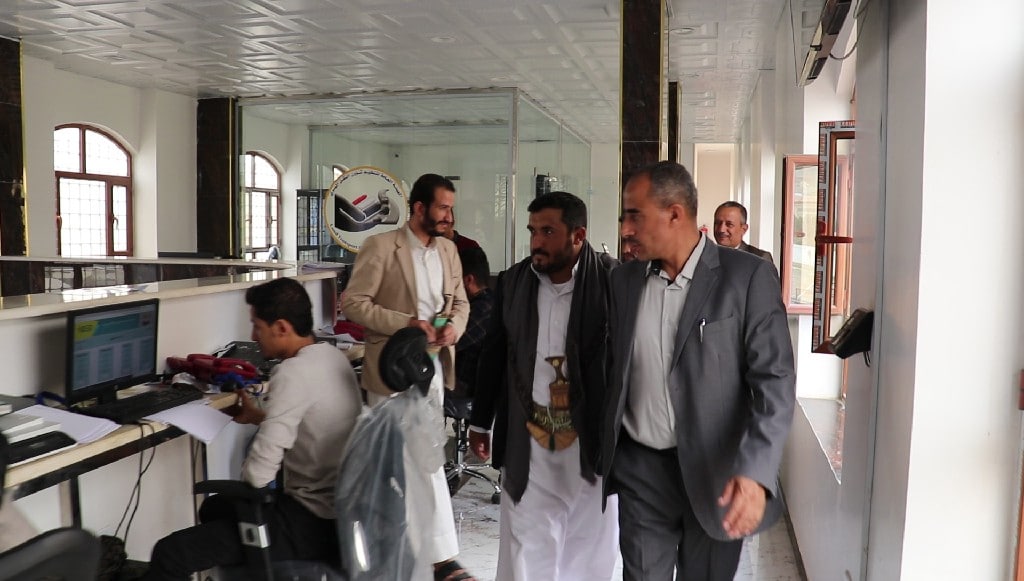 وتفقد الوادعي والكبسي سير العمل في مختلف الإدارات العامة والفرعية واستمعا إلى شرح عن آلية عمل الإدارات والاقسام واهم المهام والأنشطة المناطة بها، كما تفقدا قاعة التدريب وإدارة خدمات الجمهور وسير عمل استقبال معاملات المواطنين.