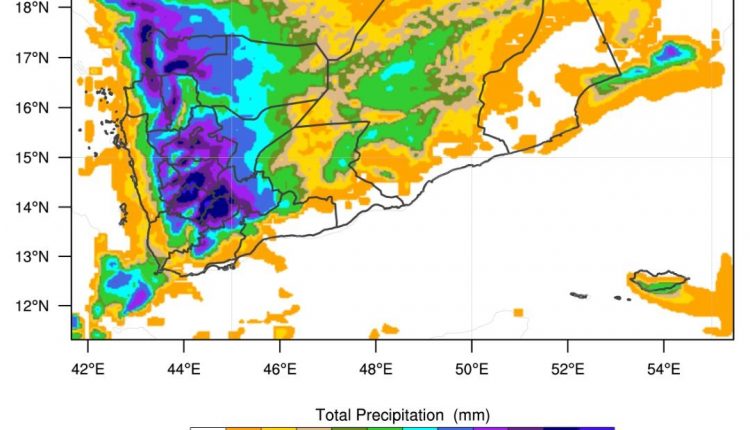 وأكد المركز في بيان له اليوم الخميس ، أن الأمطار ستكون غزيرة على المرتفعات الجنوبية والغربية من صعدة شمالاً حتى لحج وتعز جنوباً، والتي قد تصل كمية الأمطار في أغلب هذه المناطق إلى 300ملم.