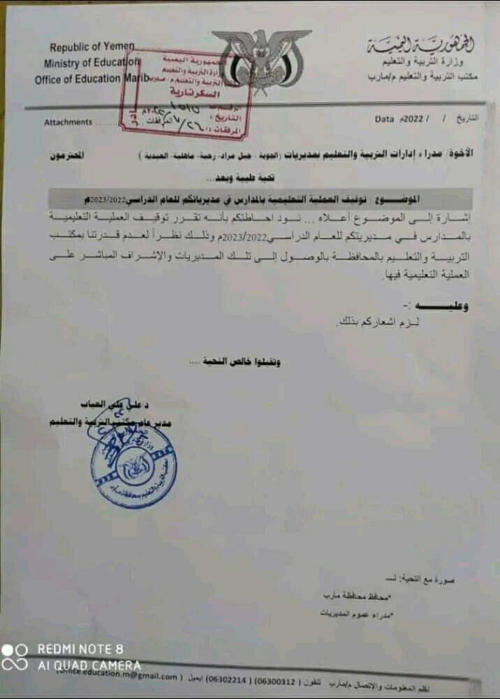 في ظل استمرار الهدنة الأممية والمساعي الجديدة لتمديدها، أصدرت سلطات مرتزقة العدوان بمحافظة مأرب، توجيهات كارثية بإيقاف العملية التعليمية في عدد من مديريات المحافظة.