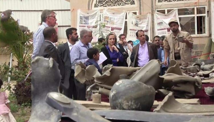 إلى ذلك زار نائب رئيس اللجنة العسكرية والمستشار العسكري لممثل الأمم المتحدة ومرافقوهما، اليوم المعرض المفتوح بساحة المركز لمخلفات الغارات الجوية والقذائف والقنابل العنقودية.